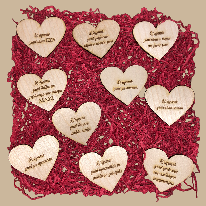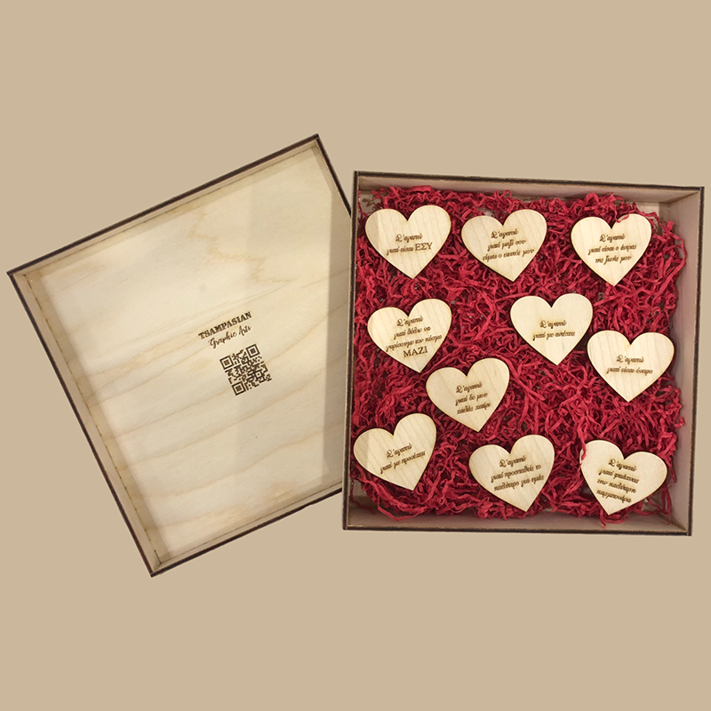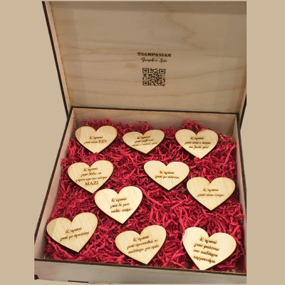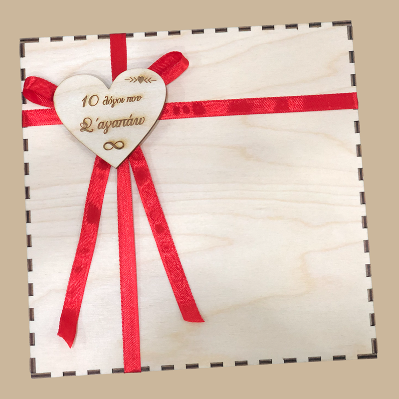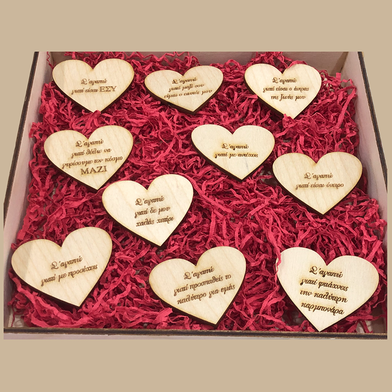 Ξύλινο κουτί με καρδούλες "10 λόγοι που Σ' αγαπώ"