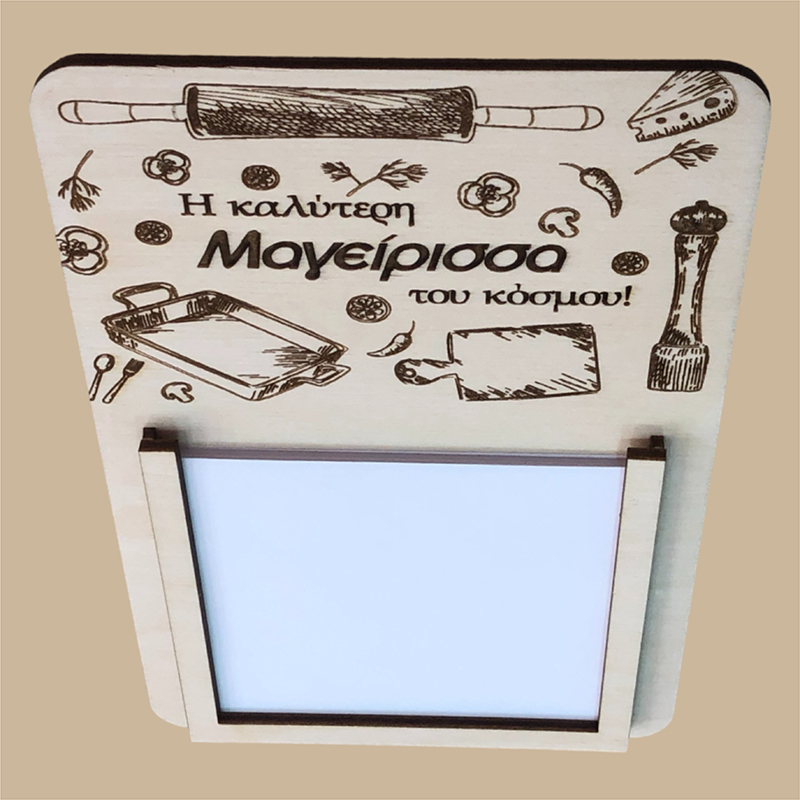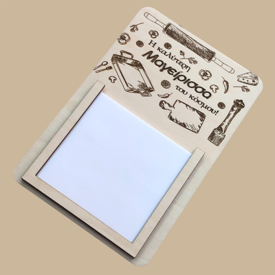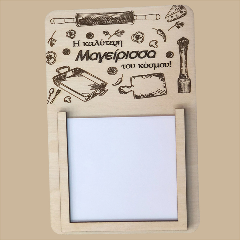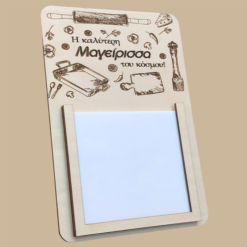 Ξύλινο μαγνητικό μπλοκάκι σημειώσεων από ξύλο κόντρα πλακέ, με χάραξη "Η καλύτερη μαγείρισσα του κόσμου".