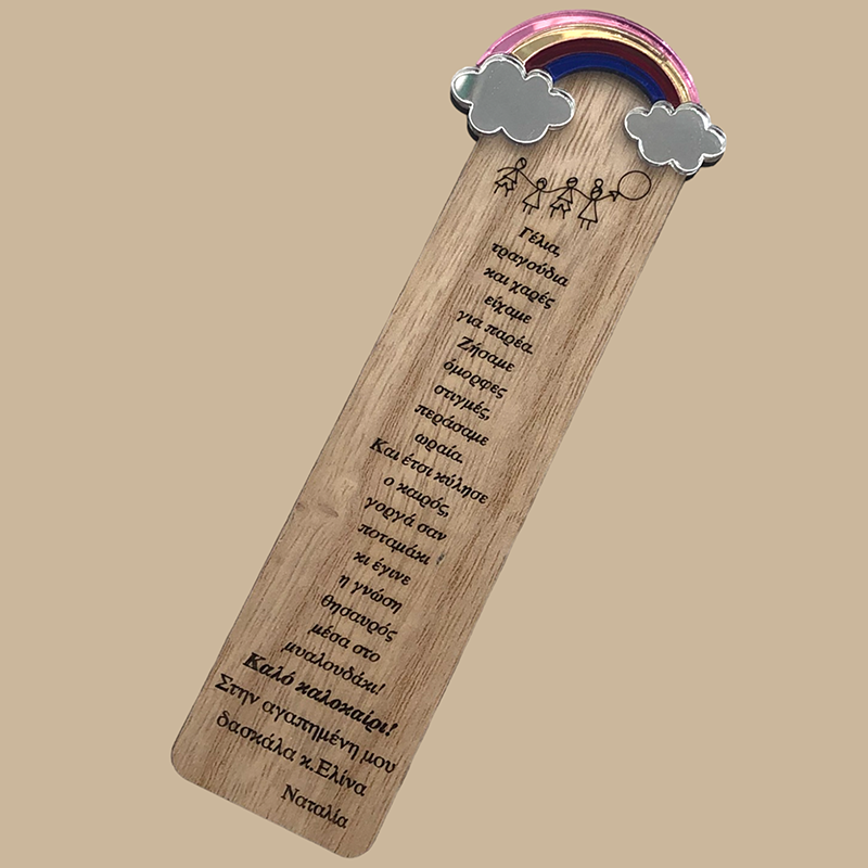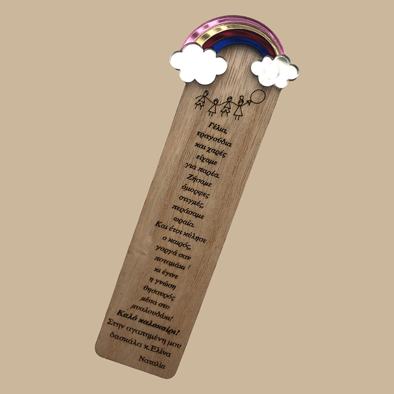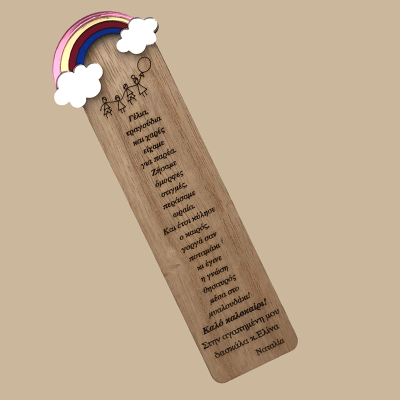 Ξύλινος σελιδοδείκτης με θέμα το ουράνιο τόξο.