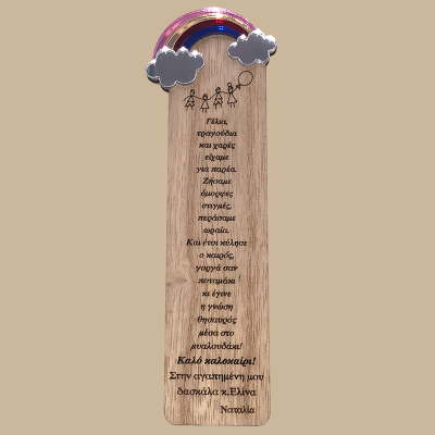 Ξύλινος σελιδοδείκτης με θέμα την κουκουβάγια και ευχές για τους δασκάλους.