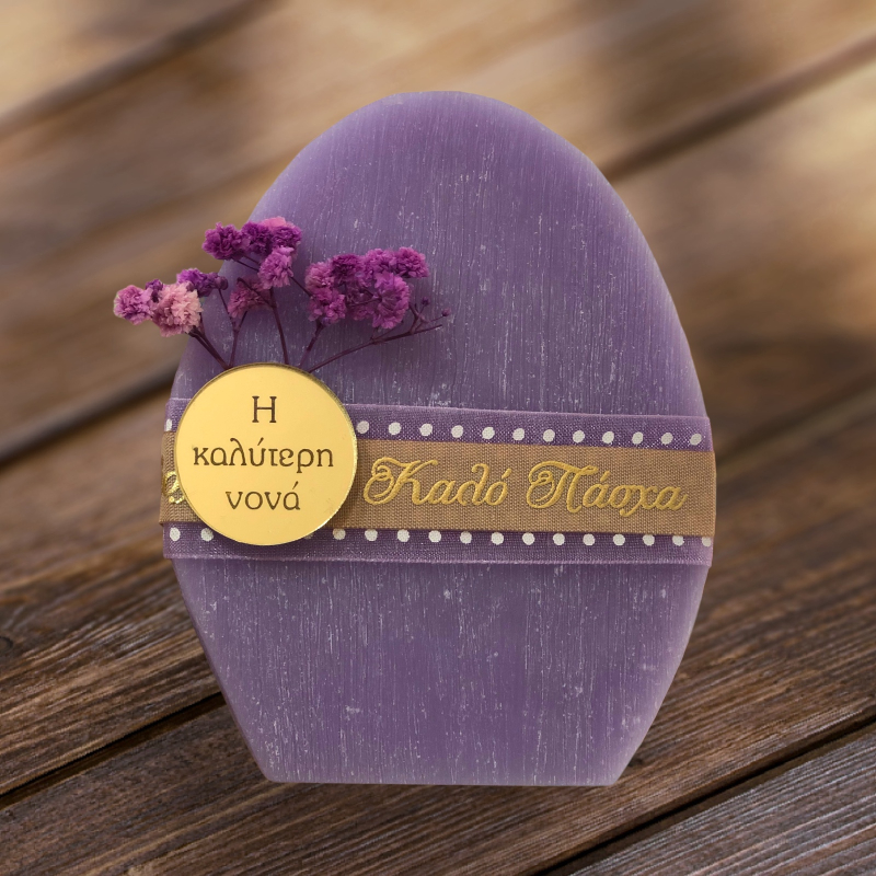 Διακοσμητικό αρωματικό κερί σε σχήμα αυγό, διακοσμημένο με λουλούδια και κορδέλες